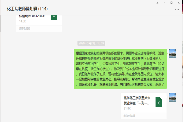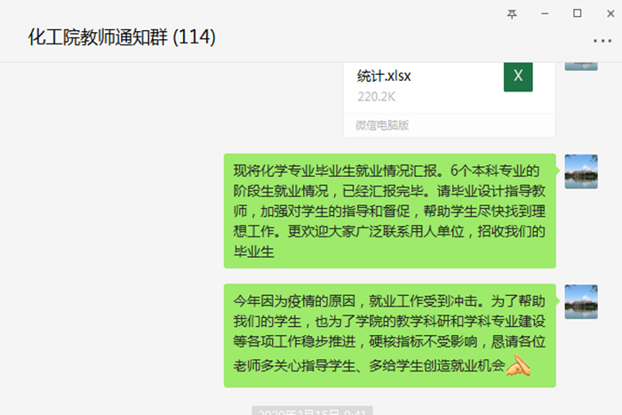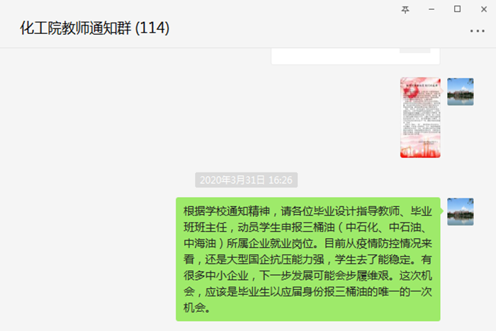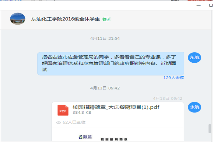 注重信息发布和就业指导,打通毕业生求职就业最后一公里。公司辅导员24小时在线,及时发布各种就业信息并开展专项解读,加强对员工的教育和引导,组织员工积极参加公司举办的线上招聘活动。针对未就业员工,辅导员做到一对一谈话,了解员工的真实想法和存在的困难,建立未就业员工档案并及时向专业教师通报,以形成促就业合力。日前,公司通过毕业年级钉钉群召开年级大会,向同学们宣传国家就业政策和公司就业工作部署,邀请公司就业指导中心副主任王雷讲解当前的就业政策、化工院往届毕业生就业去向、国内大型石化炼化企业发展前景和人才需求情况以及毕业生档案等事宜,邀请企业人事部门招聘主管为员工讲解求职经验并传授线上面试的技巧。活动对毕业生就业工作起到良好推动作用并得到了同学们的好评。