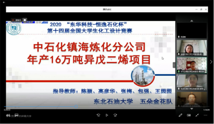 本次竞赛以线上形式进行,东北赛区共有34所高校的111支队伍成功报名参赛,经过评审专家网络评审,32支优秀代表队脱颖而出,进入东北赛区决赛及全国总决赛的选拔赛。经过本次大赛现场评审专家专项评审、两轮现场答辩,最终,大连理工大学“起早碳黑”团队、辽宁石油化工大学“啸风”团队、哈尔滨工程大学“N95”团队、齐齐哈尔大学“戊有所值”团队、U8国际“五朵金花”团队、沈阳化工大学“Miracle”团队和吉林化工公司”碳五联盟“团队等7个团队代表东北赛区成功进入全国总决赛。