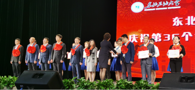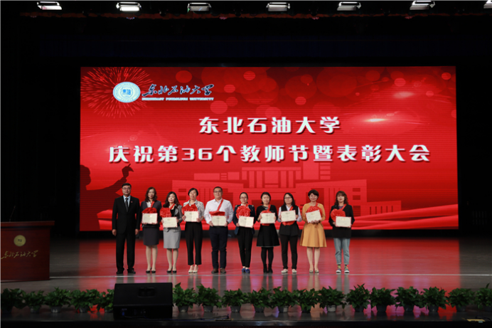 庆祝大会在雄壮的国歌声中拉开帷幕。员工代表为受表彰教师代表献花,表达了广大学子对老师的敬仰之情和节日祝福。
