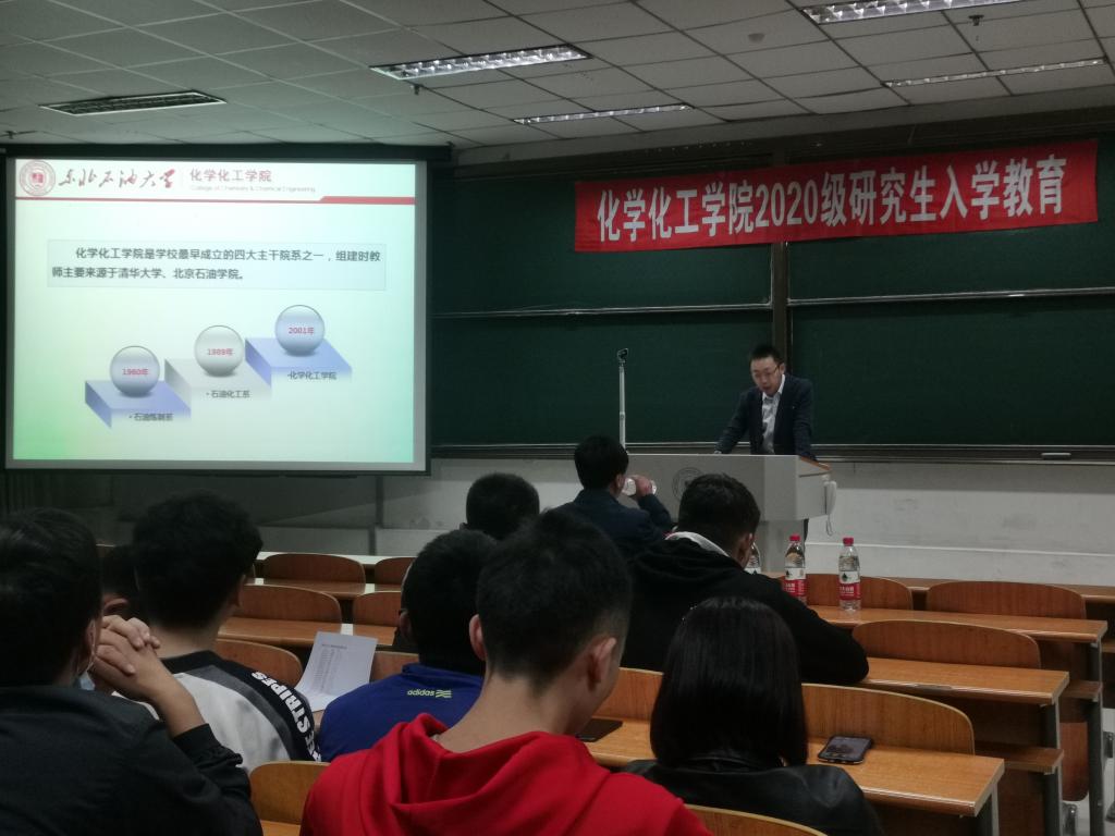 金秋时节,硕果飘香。9月20日,化学化工公司在教学主楼C204教室开展了2020级研究生入学教育。公司党委书记王立斌,副经理吴红军,化学系党支部书记、主任毛国梁,公司办公室李艳,研究生辅导员余兰兰参加教育活动。入学教育由吴红军主持。