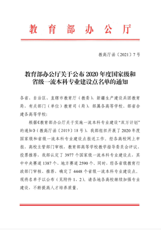 一流本科专业建设“双万计划”是教育部全面贯彻落实全国教育大会和新时代全国高校本科教育工作会议精神的重要举措。从2019年开始分三年建设10000个左右国家级一流本科专业点和10000个左右省级一流本科专业点。2019年首批分赛道认定了4054个国家级一流本科专业建设点(其中中央赛道1691个,地方赛道2363个),2020年分赛道认定了3977个国家级一流本科专业建设点(其中中央赛道1387个,地方赛道2590个)。