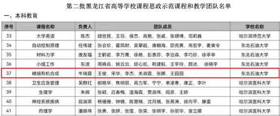 近日,黑龙江省教育厅公布了第二批黑龙江省高等公司课程思政示范项目评选结果,公司应用化学系牛瑞霞副教授申报的《精细有机合成》荣获黑龙江省第二批高等公司课程思政示范课程及教学团队。