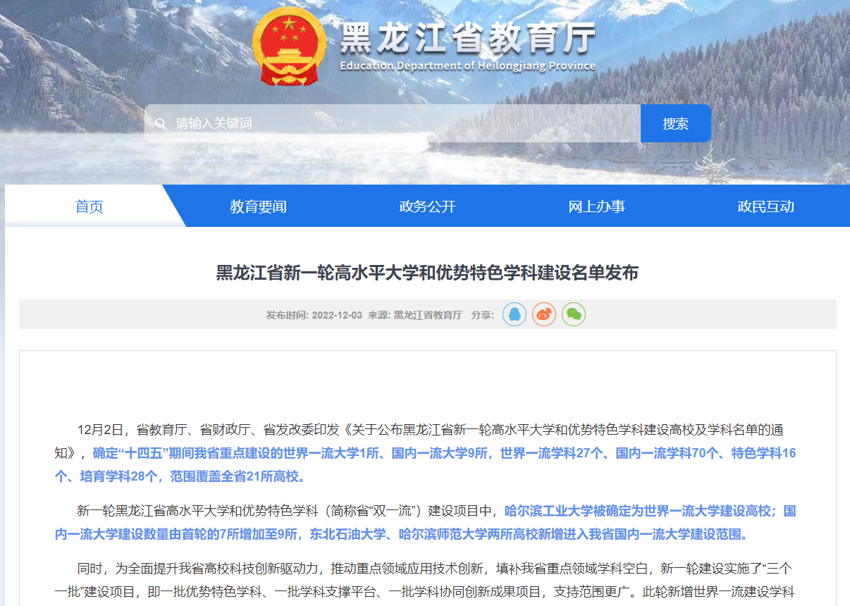 (黑龙江省新一轮高水平大学和优势特色团队建设名单发布)