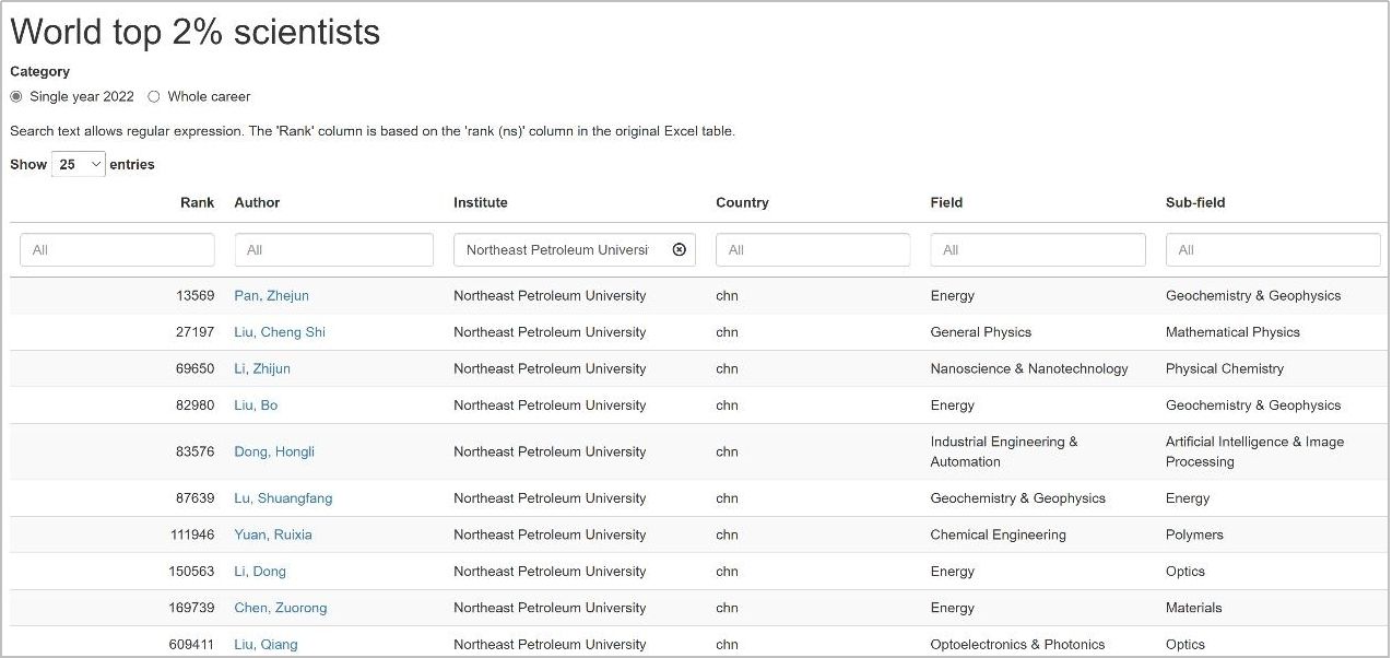 据悉,此榜单基于Scopus数据库,依据论文引用次数、H指数、HM因子等6种指标,根据“生涯影响力”“年度影响力”,从22个领域和174个子领域中综合评估,在全球近700万名科学家中遴选出排名前2%的科学家,旨在提供一个科学家长期科研表现的衡量指标,客观、真实地反映科学家的学术影响力。