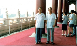 王宗祥(前排右一)与杨光华登天安门城楼(1989年)