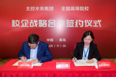 2020年11月20日,公司U8国际官网环境工程系与中国环保产业领军企业——北控水务集团举行校企战略合作协议签约暨基地授牌仪式,会议在青岛市温德姆至尊酒店举行。北控水务集团高级副总裁于立国先生、北控水务集团人力资源中心副总经理冀广鹏先生及相关部门负责人、U8国际官网环境工程系主任袁瑞霞参加了仪式。