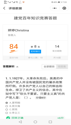 阳春三月,人面桃花相映红,第111个“三八”妇女节如期而至,为丰富公司女职工的业余生活,缓解紧张繁忙的工作压力,提高女教职工的整体素质,增强女教职工的工作积极性和创造性,充分发挥女教职工“半边天”的作用,发扬“团结拼搏、开拓进取、与时俱进、无私奉献”的精神,激发“巾帼创功立业”的工作热情,公司工会与3月7日下午组织全院女教职工开展了主题为“喜迎三八节暨建党100周年主题学习”活动,活动形式以线上建党100年主题知识答题形式进行,各教研室组织教师有序开展线上答题活动,全院教职工在公司微信群中积极交流、互送祝福,一片祥和、温暖的氛围。